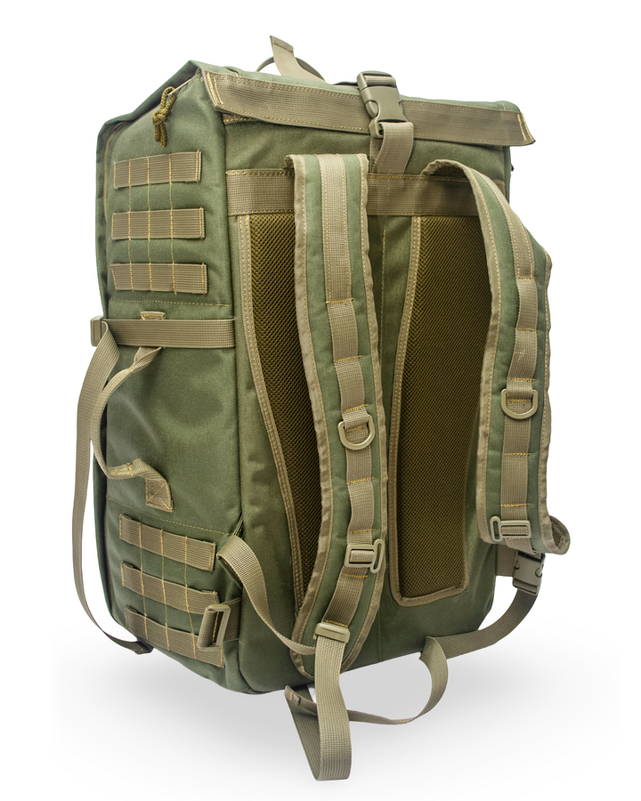 - PALS/MOLLE webbing on front, sides, and bottom.