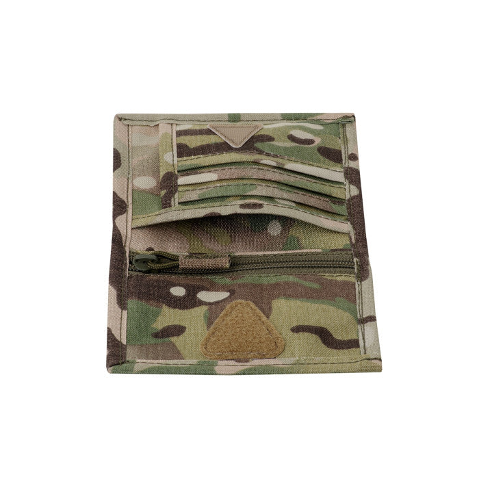 The Tactical Wallet V2 in Multicam is designed for outdoor enthusiasts and military personnel, offering a durable and practical solution for carrying cash, cards, and essential items securely.