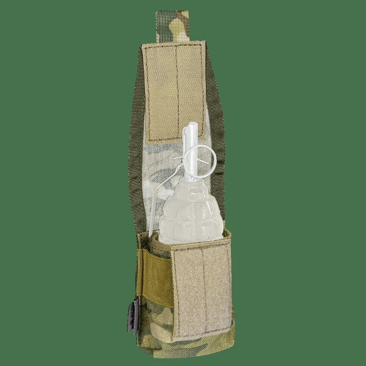 The TG/CTC Multicam Grenade Pouch (7997) is suitable for tactical training, field use, or as part of a collection. Its high-density materials and meticulous stitching ensure it maintains its shape and protective features even under intensive use.