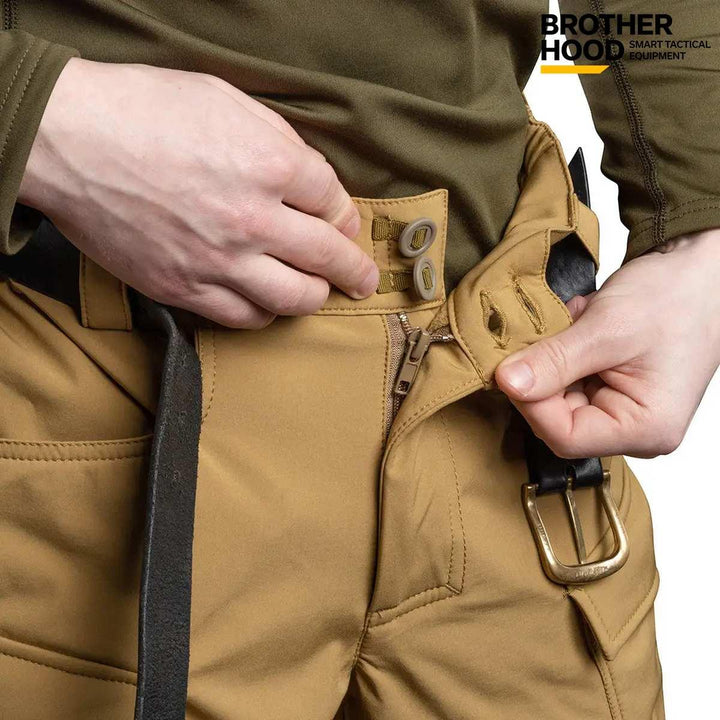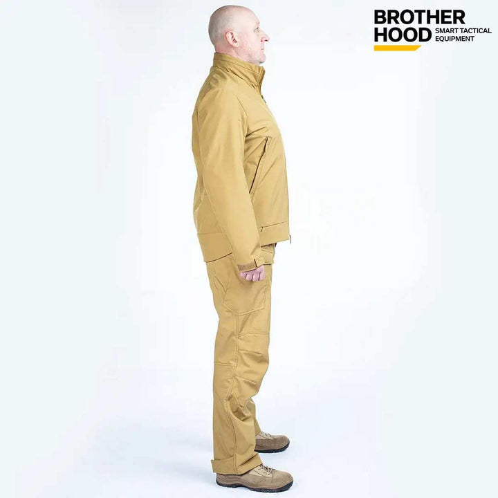 The UT 2.0 Brotherhood SoftShell Suit in Coyote is a lightweight and functional men's suit designed for the Spring/Fall season, ideal for active use during work, service, or leisure. Made in Ukraine, this suit offers excellent protection against the elements while ensuring comfort and warmth.