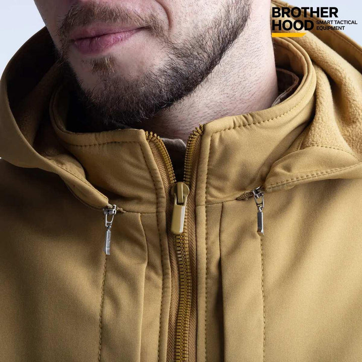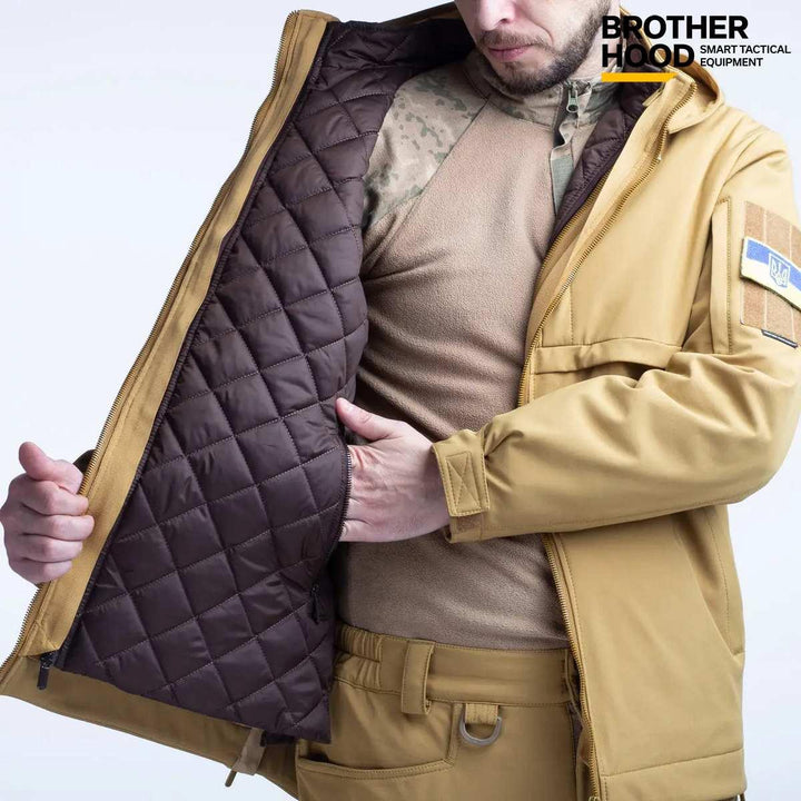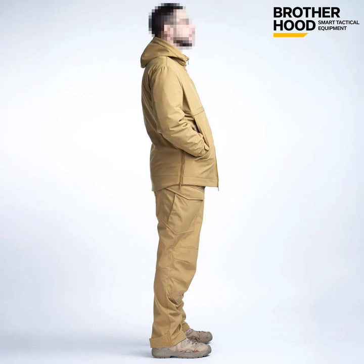 The UTJ 3.0 Brotherhood Military Suit in Coyote with Olive lining is a versatile men's ensemble designed for the autumn season. Crafted in Ukraine, this suit is ideal for military personnel and tactical clothing enthusiasts, offering effective protection against wind, cold, and rain.
