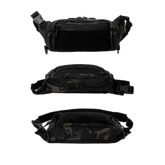 The Universal Tactical Bag (Fanny Pack) V2 in Black Multicam is designed for versatility and convenience, making it an ideal companion for outdoor adventures and tactical operations.