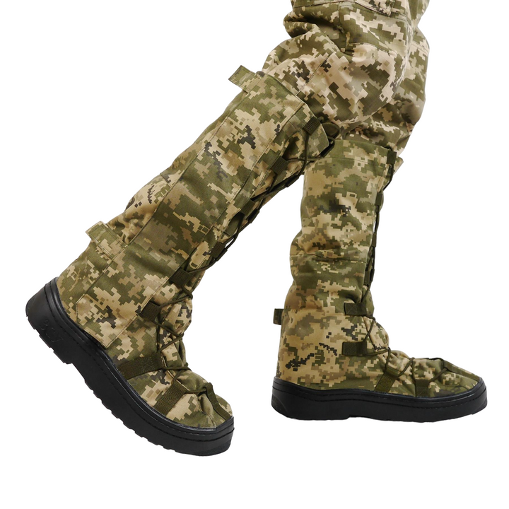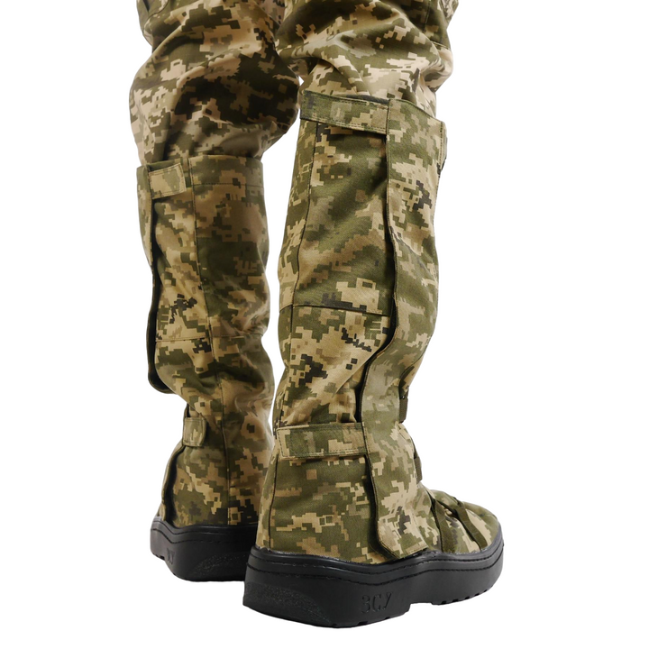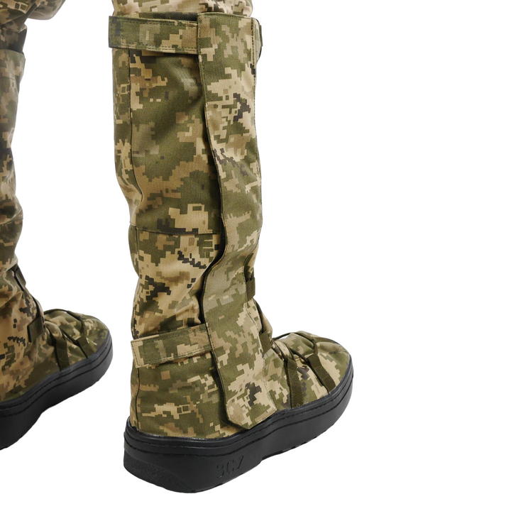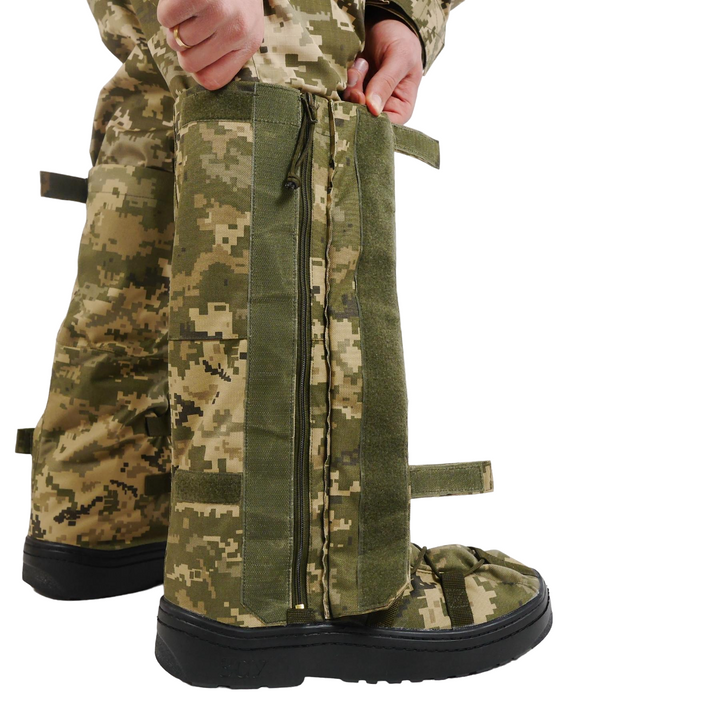 The tactical gaiters in pixel and olive colors provide reliable protection for footwear in challenging weather conditions. Made from durable, waterproof nylon, they ensure comfort and warmth in wet and muddy environments, making them an ideal choice for hunters, anglers, hikers, and tactical operations.