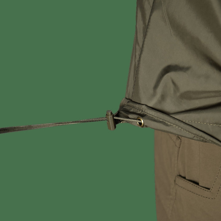 - Adjustable Fit: Elastic drawstring at the bottom with plastic stoppers for quick volume adjustments.