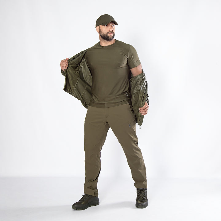 The Windout 2.0 Jacket in Olive (9228) by Camotec is an updated lightweight sports jacket designed for active outdoor activities and hiking. Its thoughtful design, ergonomics, and compactness make it feel almost weightless during movement, ensuring comfort during physical exertion.