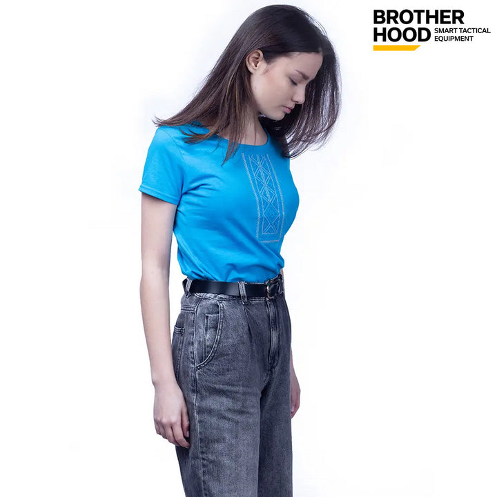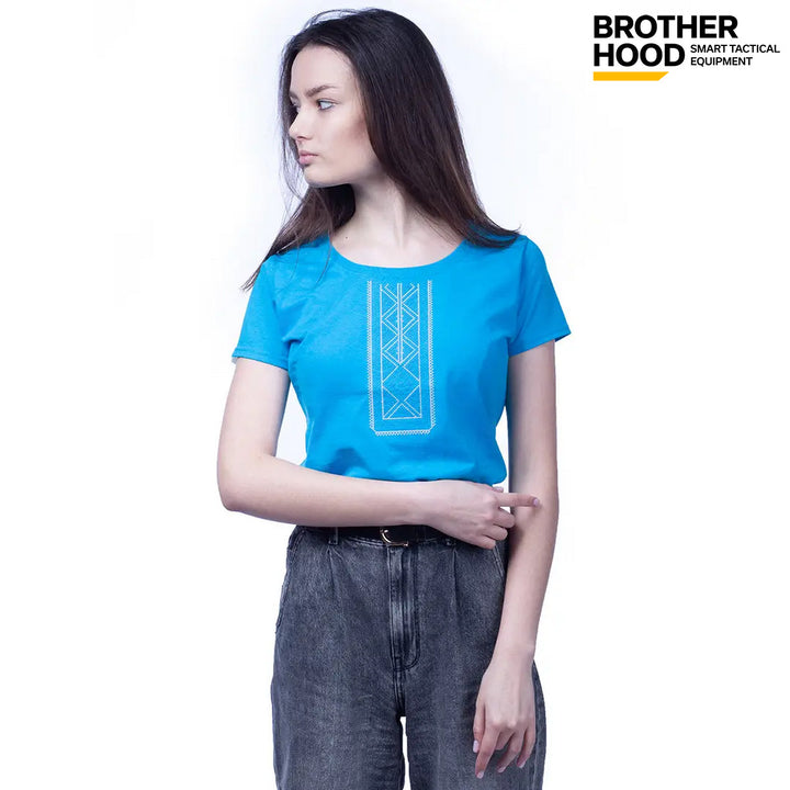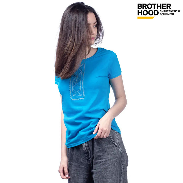The Brotherhood F Women's Embroidered T-Shirt in blue combines ethnic design with modern tailoring, making it a stylish and comfortable choice for those who value quality, practicality, and patriotic style in both everyday and festive attire.